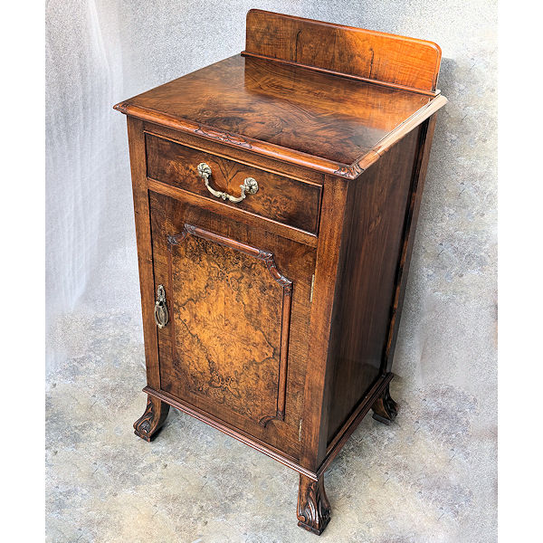 Antique Stock / Cabinets / Burr and Walnut Bedside Cabinet Burr and Walnut Bedside Cabinet A good quality burr and figured walnut cabinet C. 1920 Price: £345 Enquire about this Antique < Back to Cabinets